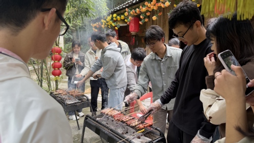 活动当天,师生们在山林环抱的自然环境中开启了丰富多样的休闲体验。烧烤区炊烟袅袅,大家分工协作,从食材准备到炭火烤制,欢声笑语中分享美食;火锅区热气腾腾,荤素搭配的菜品在汤底中交融,传递着冬日般的温暖。餐后的自由活动时间里,桌游爱好者围坐一桌,在策略与互动中展现思维活力;K歌环节则成为才艺展示的舞台,经典老歌与流行金曲交替上演,掌声与歌声回荡林间。此外,研究室还组织了户外拓展小游戏,师生们在团队协作中放松身心,进一步拉近了彼此距离。